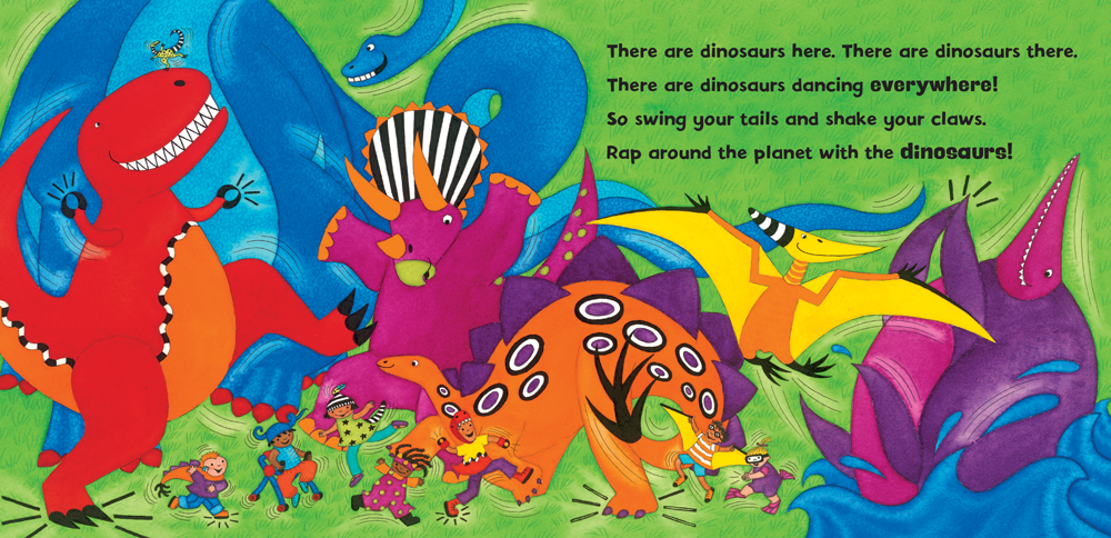 Come on everybody, shake a claw! Let me hear you bellow. Let me hear your roar with 7 dancing dinosaurs! With funky lyrics and a catchy rap performance, this rhythmic romp will have kids dancing, laughing and having a blast while introducing them to seven dinosaurs.