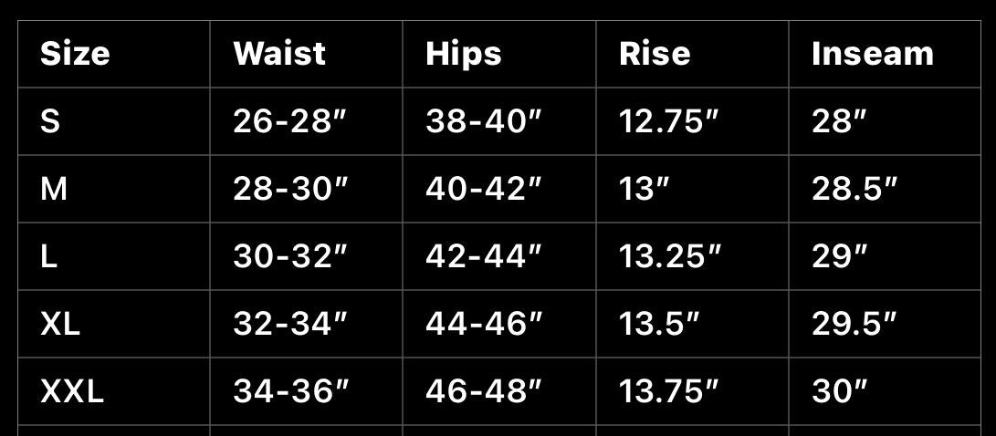 Size S Measurements: Rise 12 3/4", Inseam 28"